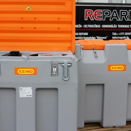 Augstas kavlitātes CEMO polietilēna dīzeļdegvielas tvertnes transportēšanai. Paredzētas dīzeļdegvielas uzglabāšanai un pārvietošanai no degvielas uzpildes stacijām uz mežu izstrādes, būvobjektiem un lauksaimniecības darbu norises vietām. Sertificētas atbilstoši ADR nolīguma prasībām. Aprīkota ar sūkni un automātisko uzpildes pistoli degvielas skaitītāju, atlikuma rādītāju.